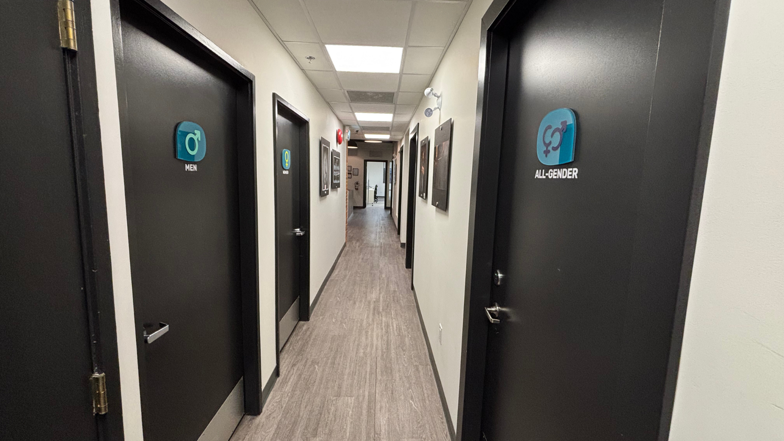 To enhance safety and comfort for facility users during evenings and weekends, building access is restricted outside regular business hours. After office hours, event attendees can gain entry using the intercom located beside the main entrance. The entrance area also provides ample space for a greeter or host to welcome participants and manage event registrations if needed.